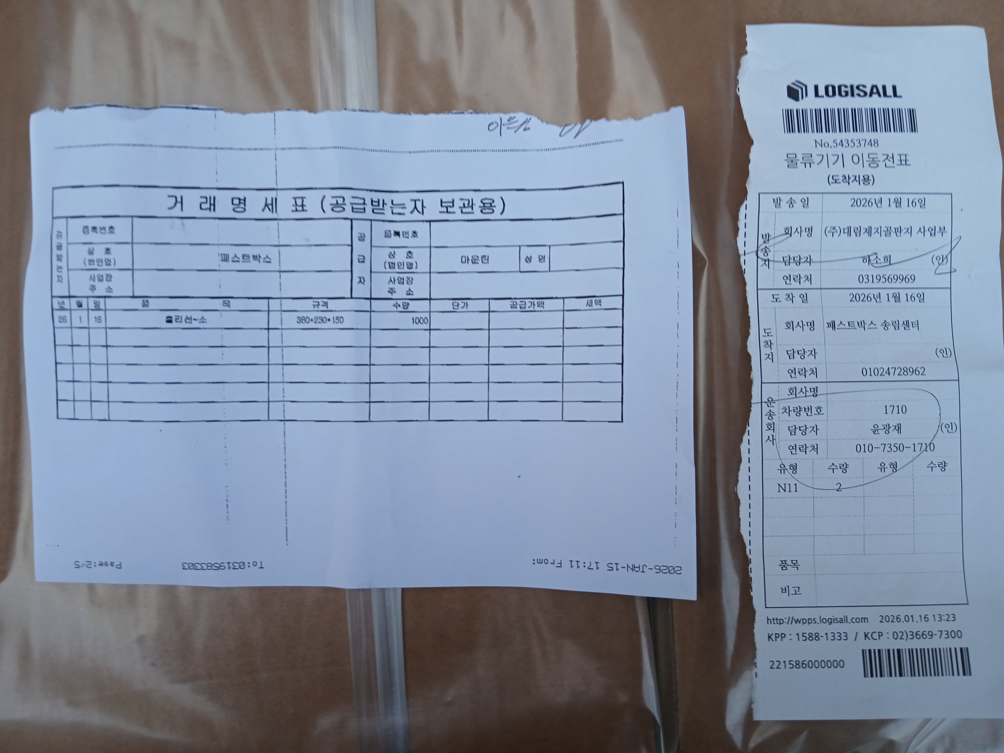 #1. 홀리선 소 / 수량 : 1,000 / 규격 : 380*230*150(KLBKK/A)
