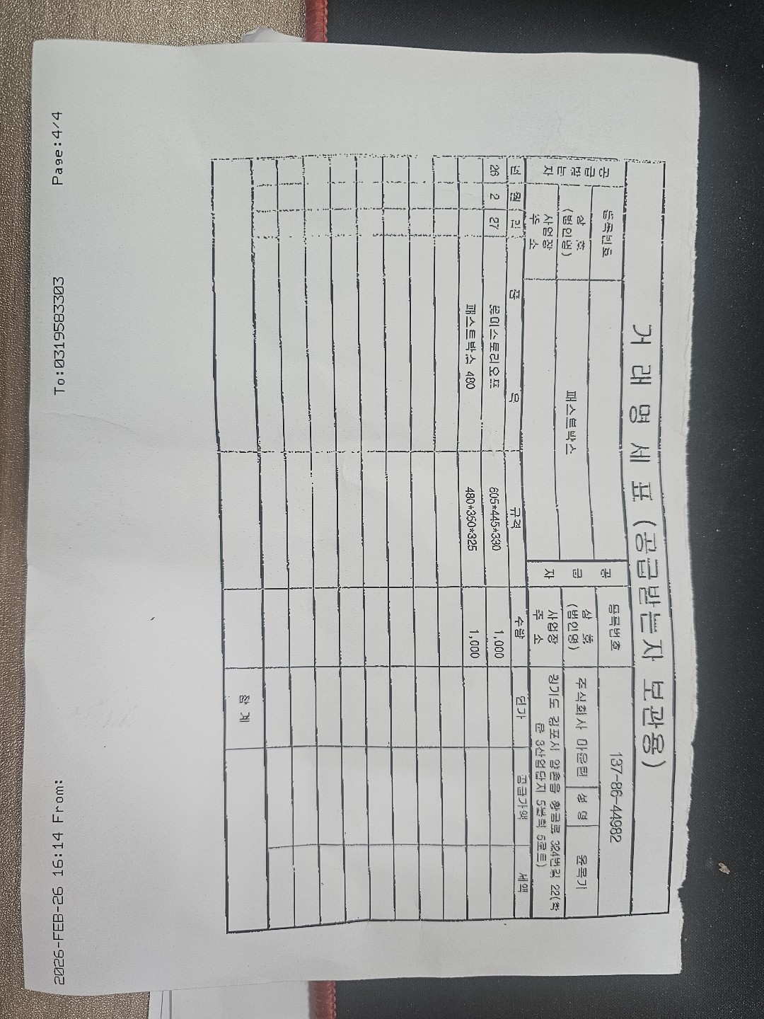 #2. 4번무지박스 / 수량 : 1,000 / 규격 : 480*350*325(SKUKK/A)