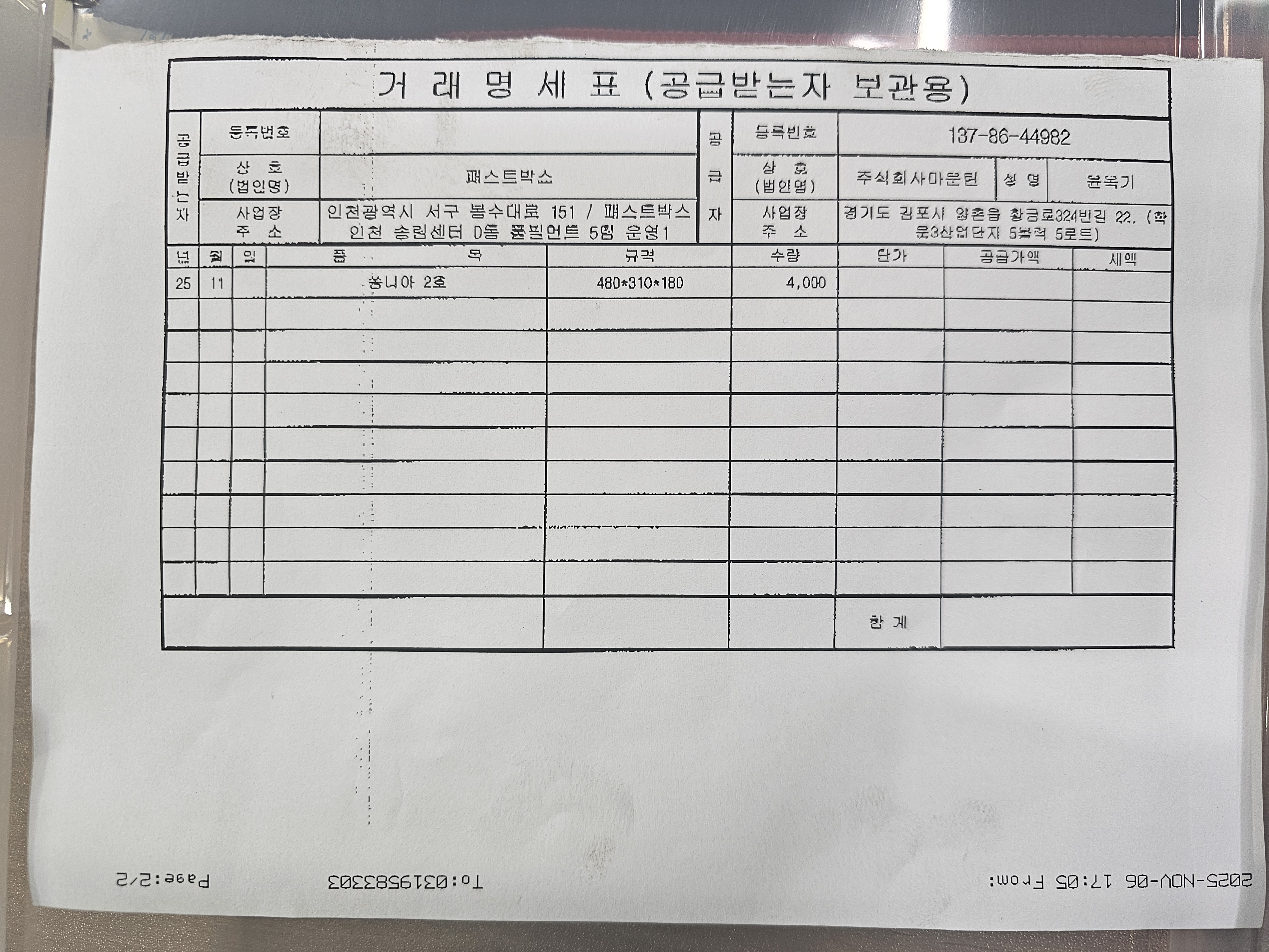 #1. 쏨니아 2호 / 수량 : 4,000 / 규격 : 480*310*180(KLBKK/B)