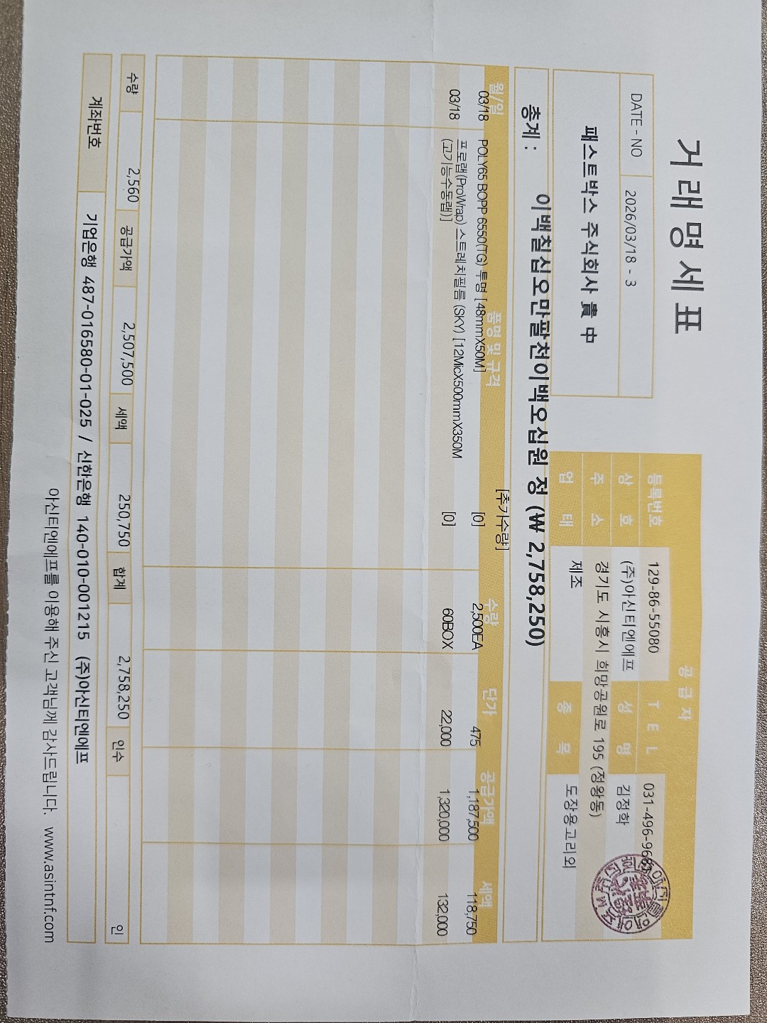 #2. 스트레치 필름-기능성(12mic) / 수량 : 60 / 규격 : 12mic*500mm*350M