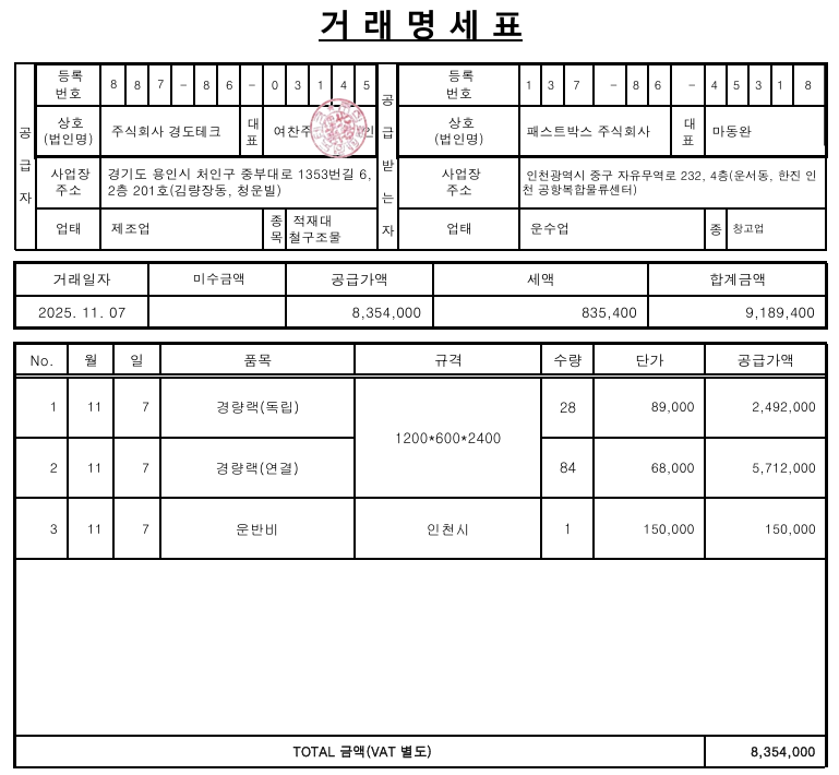 #1. 경량랙(독립) / 수량 : 28 / 규격 : 1200*600*2400
